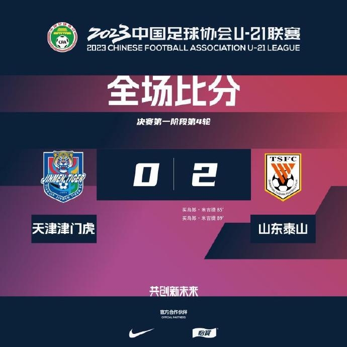 U21联赛:天津津门虎0-2山东泰山 买乌郎梅开二度