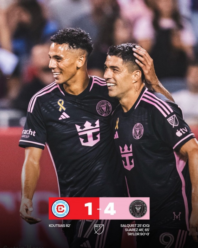 美职联-迈阿密4-1芝加哥迎联赛四连胜 苏亚雷斯独造三球