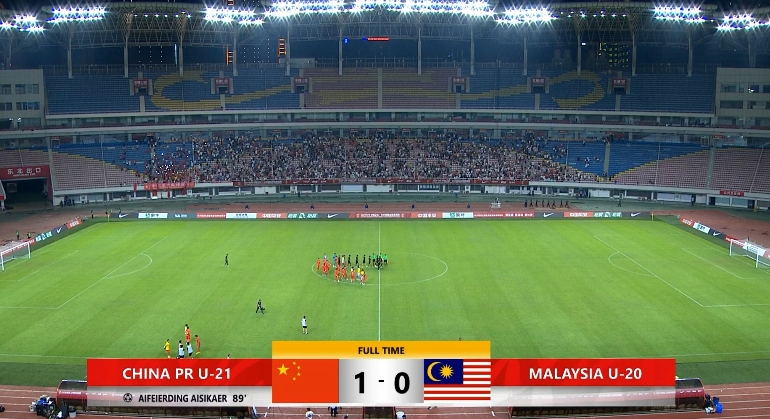 9月7日讯 北京时间9月7日19:35,U21国足主场对阵马来西亚U20。上半场,中国队频频制造出破门良机,但可惜未能转化成进球,廖荣祥和何小珂先后错失单刀机会。半场战罢,U21国足暂0-0马来西亚U20;下半场,双方做出大面积换人调整,替补出场的艾菲尔丁打入全场比赛唯一进球。全场比赛结束,U21国足1-0马来西亚U20!