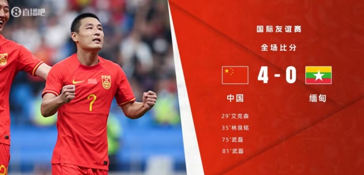 6月16日讯 北京时间6月16日18:30,中国男足在大连梭鱼湾体育场迎战缅甸男足。上半场,张琳芃射门打在艾克森身上折射入网,随后艾克森助攻林良铭扩大优势,武磊错失良机;下半场,徐新、艾克森连入两球均被吹罚无效,武磊6分钟连入两球。最终,国足4-0击败缅甸收获胜利,球队下周二将与巴勒斯坦队进行热身。