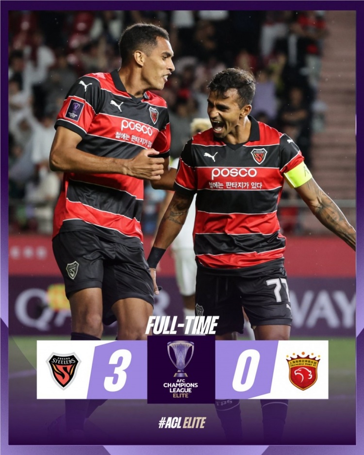 浦项制铁出场阵容:1-尹平国、4-全珉洸、17-申光勳、26-李泰锡(46’27-郑在熙)、34-李奎伯、6-金钟佑(46’16-韩赞熙)、8-奥贝丹(87’18-姜铉齐)、37-洪胤相(82’10-白星东)、20-安宰俊、77-万德森(82’2-鱼祯元)、9-若热-特谢拉