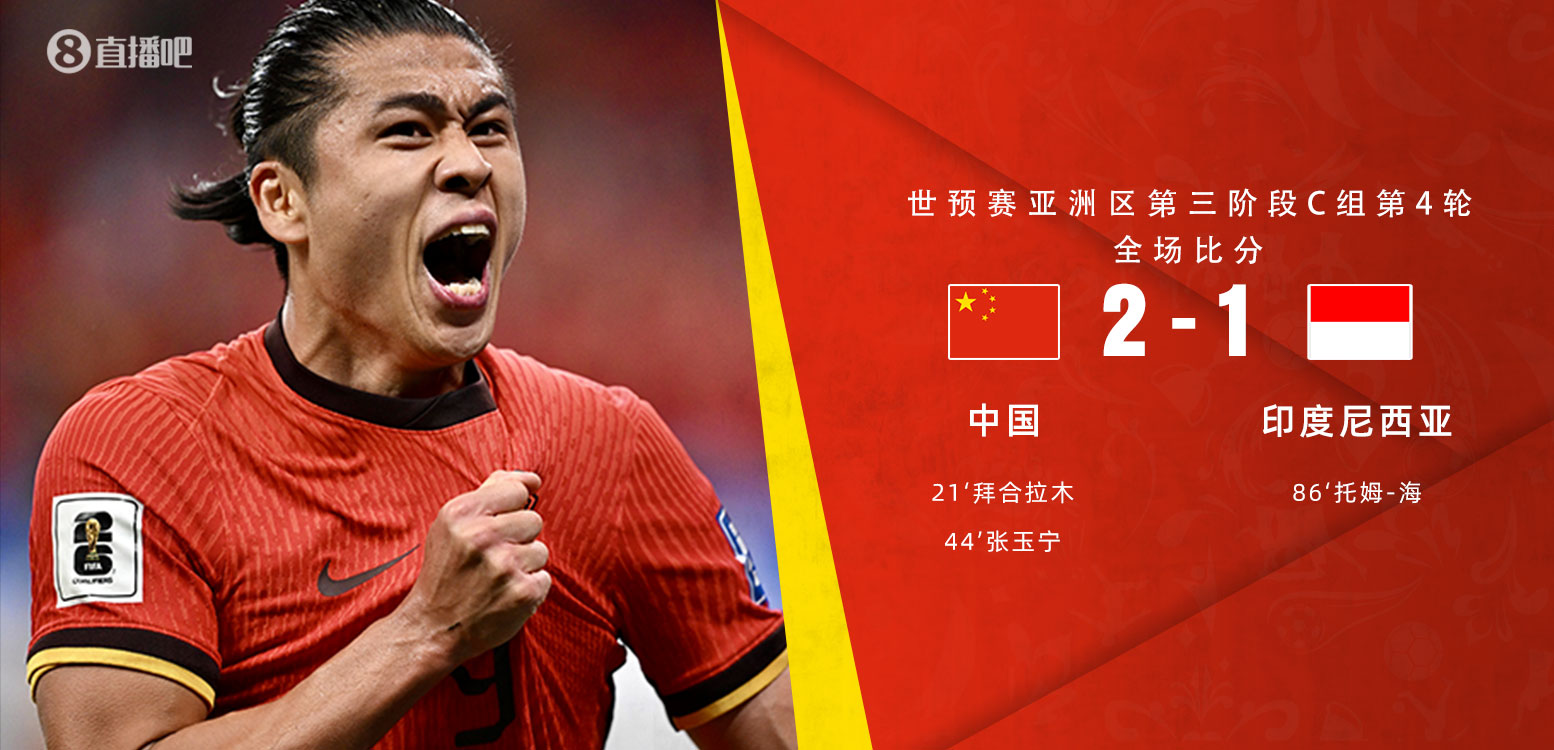 18强赛首胜!国足2-1印尼 拜合拉木张玉宁破门蒋圣龙高准翼助攻