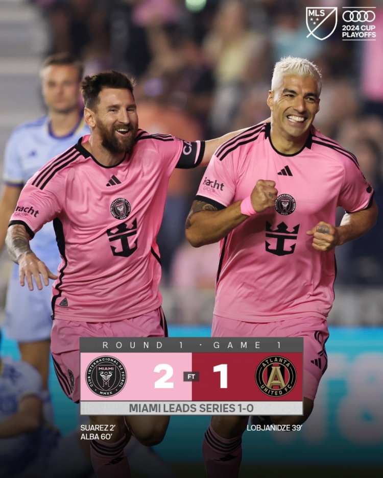 10月26日讯 北京时间10月26日早8时30分,2024赛季美职联1/8决赛第一回合展开角逐,迈阿密国际坐镇主场迎战亚特兰大联。上半场苏亚雷斯开场1分半闪击,梅西中柱,迈阿密防线漏人遭扳平,下半场阿尔巴世界波制胜,梅西助攻+9脚射门,对方门将古赞9次扑救。最终迈阿密国际主场2-1战胜亚特兰大联,三局两胜制迈阿密先取1胜占得晋级先机,双方将于11月3日进行第二回合较量。
