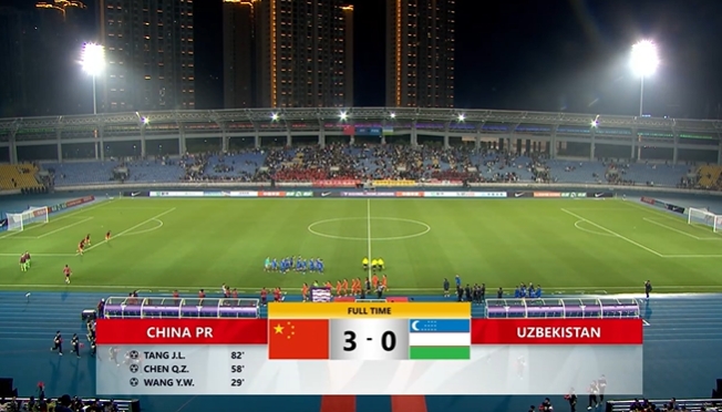 下半场补时5分钟,中国女足3-0乌兹别克斯坦女足。