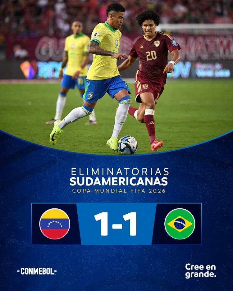11月15日讯 世预赛南美区第11轮,巴西客场对阵委内瑞拉。上半场,拉菲尼亚错失良机+任意球直接破门,维尼修斯铲射中柱。易边再战,塞戈维亚替补闪击扳平,维尼修斯造点+失点,冈萨雷斯直红。最终委内瑞拉1-1巴西。积分榜方面,巴西先赛一场暂升第三。