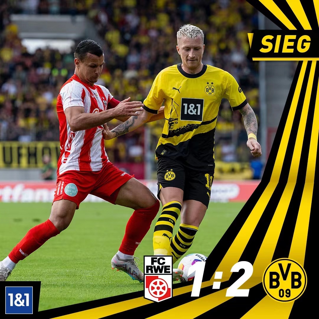 全场比赛结束,多特2-1埃尔福特红白。