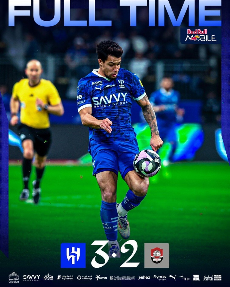 新月再度落后!第77分钟,新月后场被断球,豪萨维右路横敲,叶海亚领球杀入禁区低射远角破门,利雅得新月1-2布赖代先锋!↓
