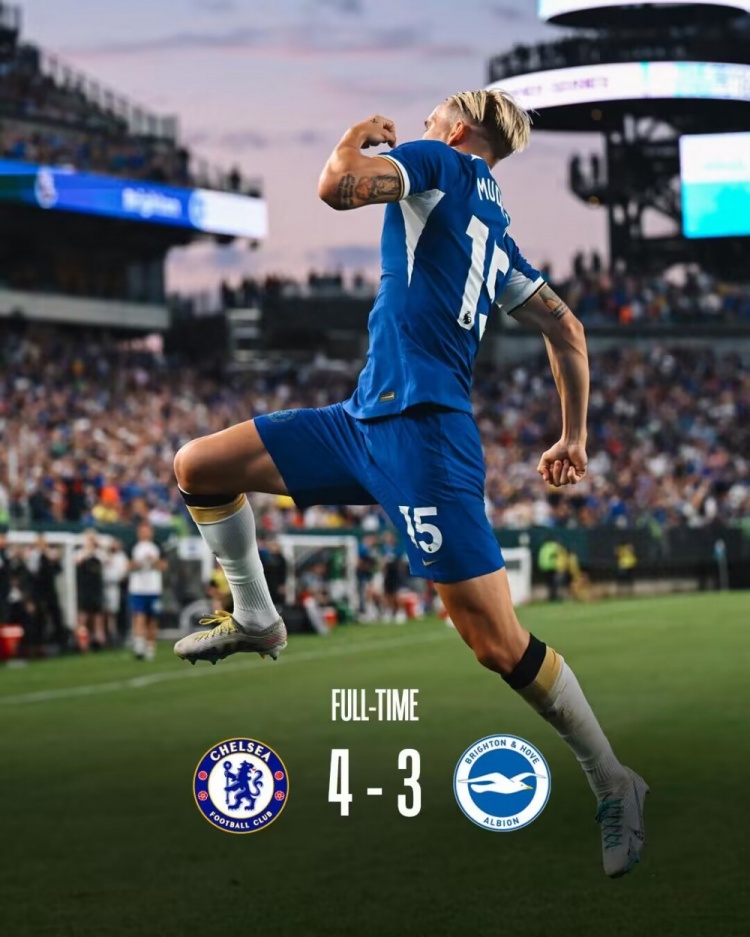 全场比赛结束,切尔西4-3布莱顿。