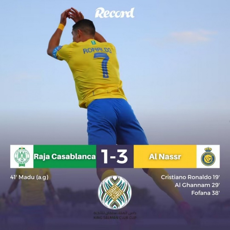 利雅得胜利首发:44-阿奇迪、2-哈纳姆、3-马杜、78-奥贾米、15-特莱斯(87'13-科南)、6-福法纳(70'8-苏莱西姆)、17-哈巴利(87'19-哈桑)、94-塔利斯卡(78'45-阿卜杜拉齐兹)、77-布罗佐维奇、10-马内(70'29-加里卜)、7-C罗