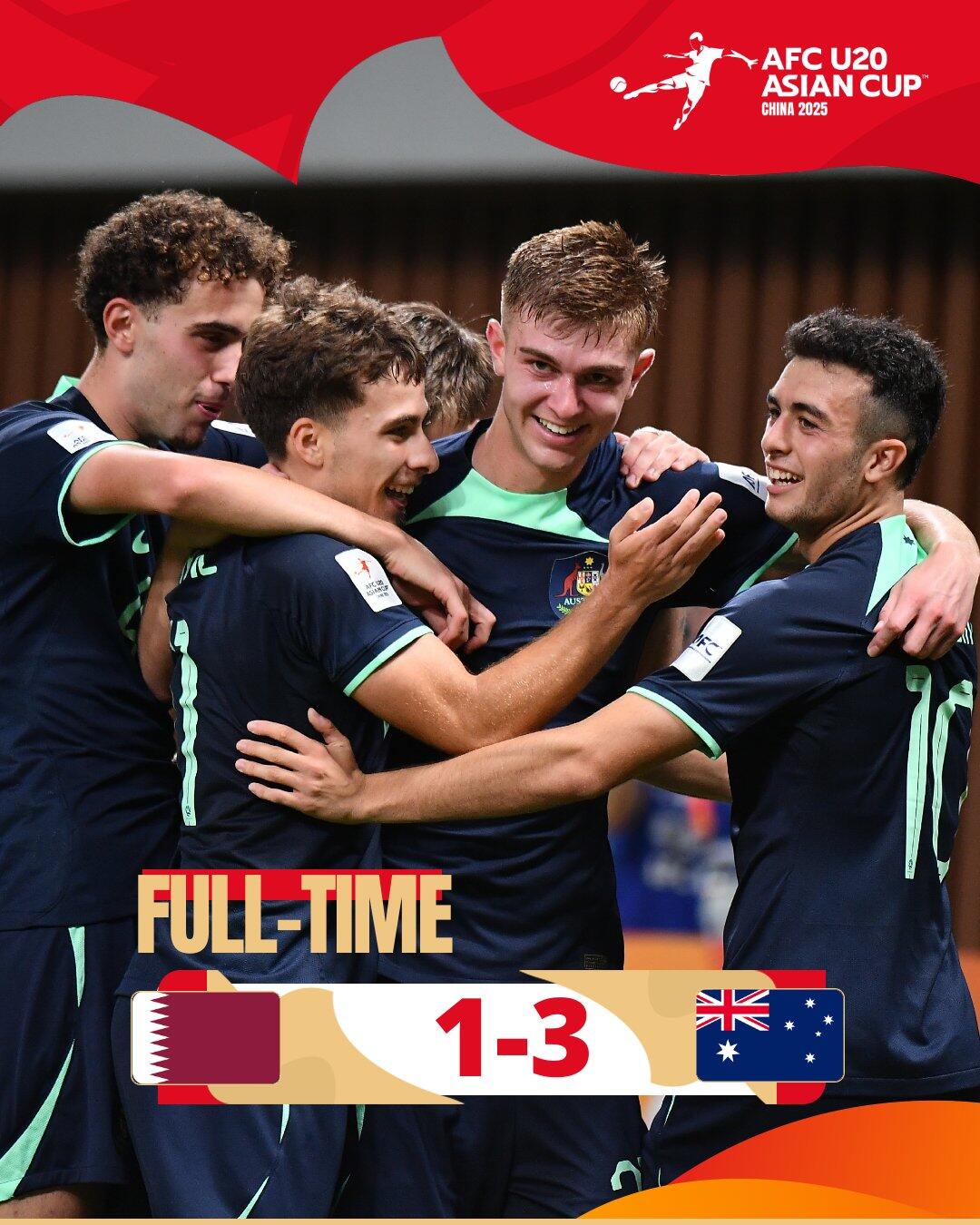 全场比赛结束,最终澳大利亚U20以3-1战胜卡塔尔U20。