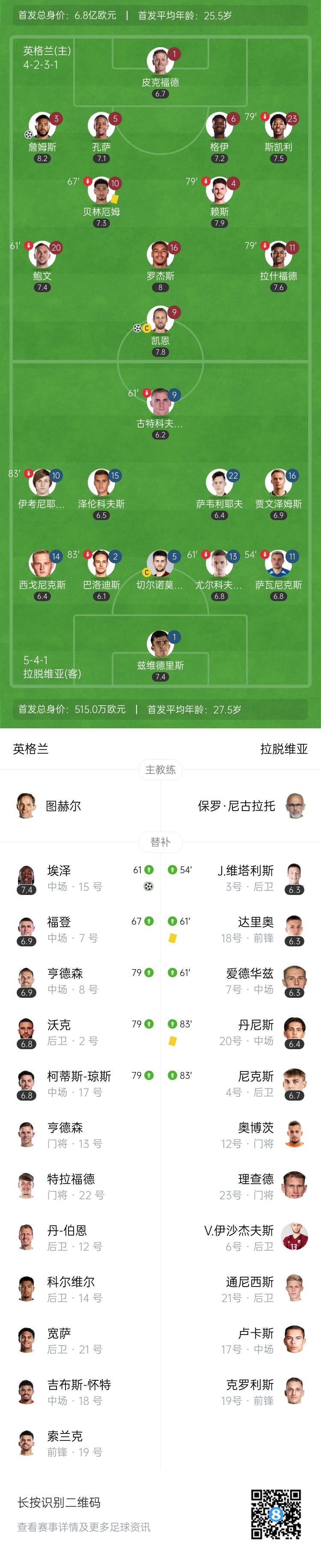 3月25日讯 北京时间3:45,世预赛欧洲区小组赛K组第2轮,英格兰vs拉脱维亚,比赛在温布利球场打响!上半场,里斯-詹姆斯精彩任意球破门!下半场,赖斯助攻凯恩破门;埃泽单兵爆破建功。最终,英格兰3-0战胜拉脱维亚,世预赛2连胜暂3分领跑K组。