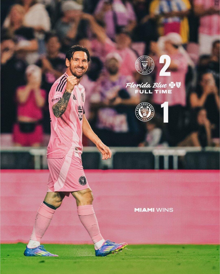 美职联-梅西复出破门泰勒建功 迈阿密国际2-1费城登顶东区榜首
