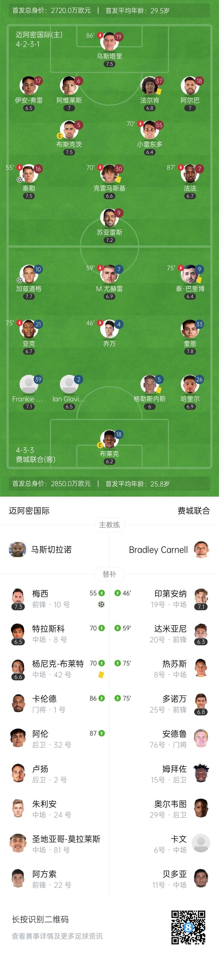 第83分钟,迈阿密后防兵荒马乱,伊恩-弗雷关键堵抢眼救主。↓