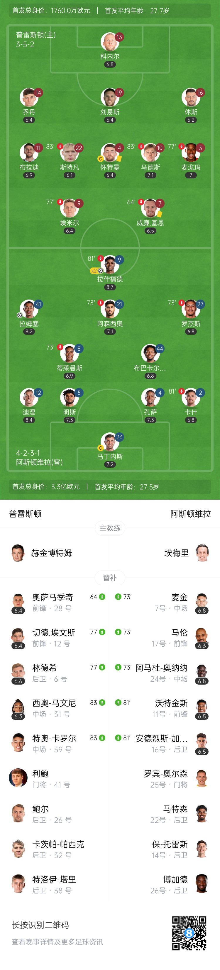 拉师傅双响!维拉3-0普雷斯顿进足总杯半决赛 拉姆塞破门摩根造点