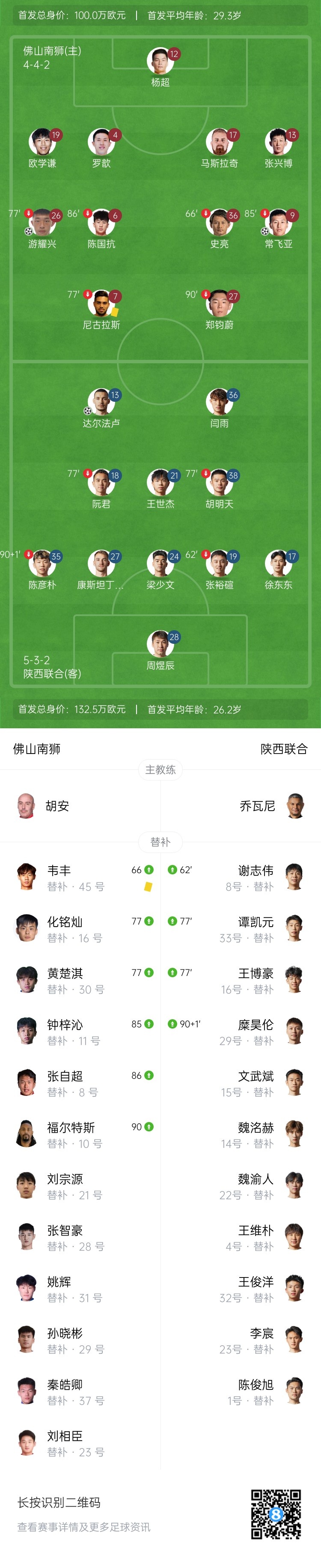 第80分钟,陕西右路突破送出传中,达尔法卢头球扳回一球,陕西联合1-2佛山南狮。↓