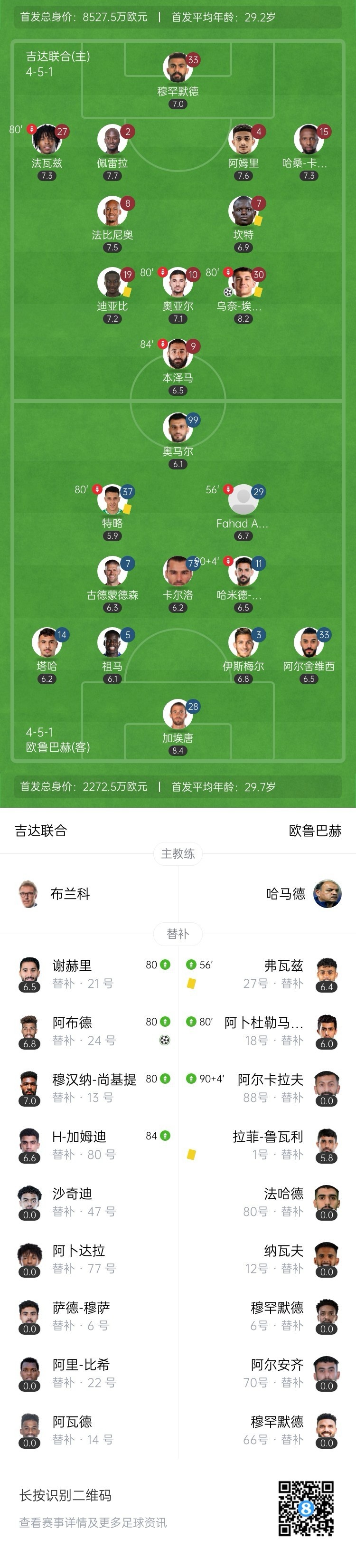 全场比赛结束,吉达联合主场2-0战胜欧鲁巴赫。