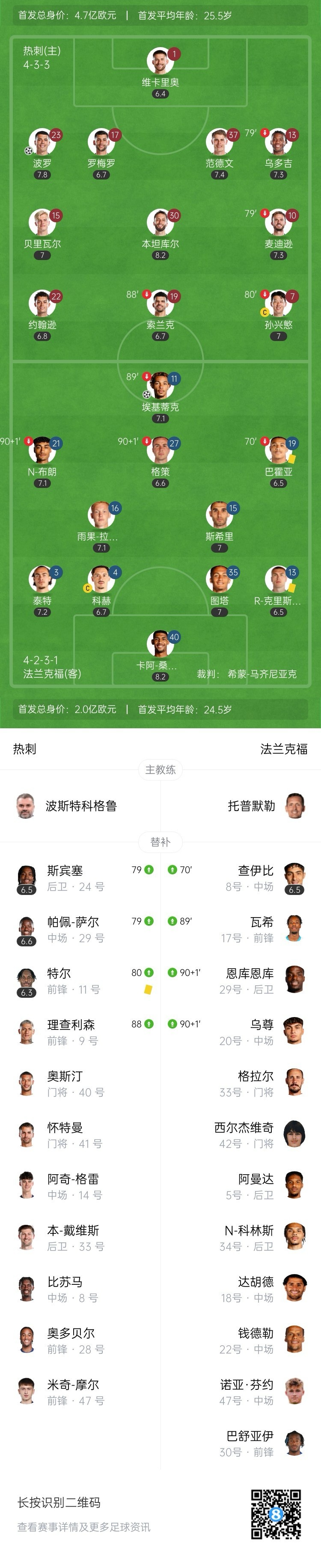 4月11日讯 北京时间4月11日凌晨3时,欧联杯四分之一决赛首回合,热刺坐镇新托特纳姆热刺球场迎战法兰克福。上半场,埃基蒂克首开纪录,随后波罗扳平比分。下半场双方均无建树,贝里瓦尔和本坦库尔相继射门中框。最终热刺首回合1-1战平法兰克福,双方次回合比赛将在4月18日开打。