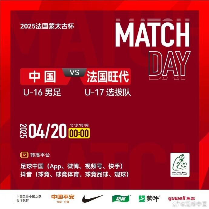 全场比赛结束,U16国足2-1逆转旺代省U17。