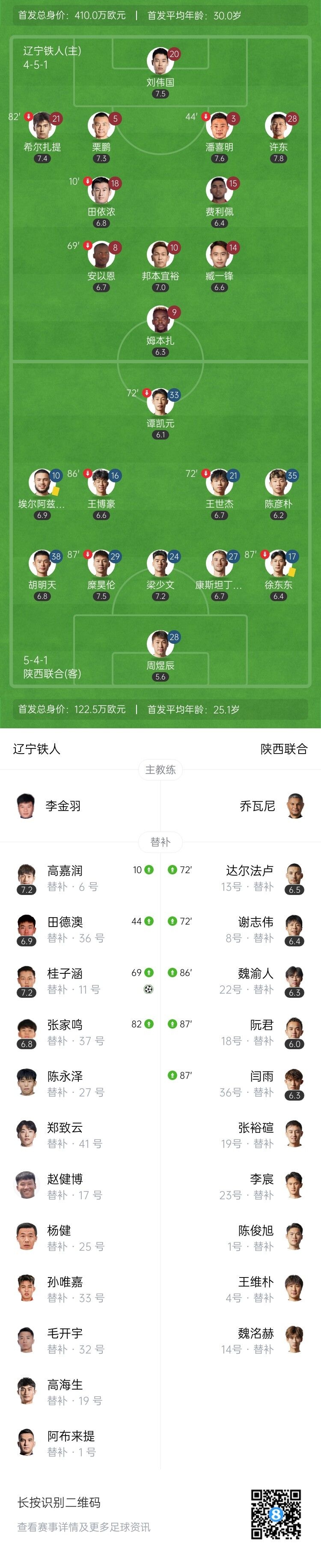 5月4日讯 北京时间5月4日下午15:00,中甲第7轮,辽宁铁人坐镇沈阳城市体育场迎战陕西联合。上半场,田依浓被顶太阳穴受伤下场,潘喜明也伤退。下半场,谭凯元破门被吹越位,桂子涵替补建功,魏渝人替补扳平,臧一锋89分钟绝杀。