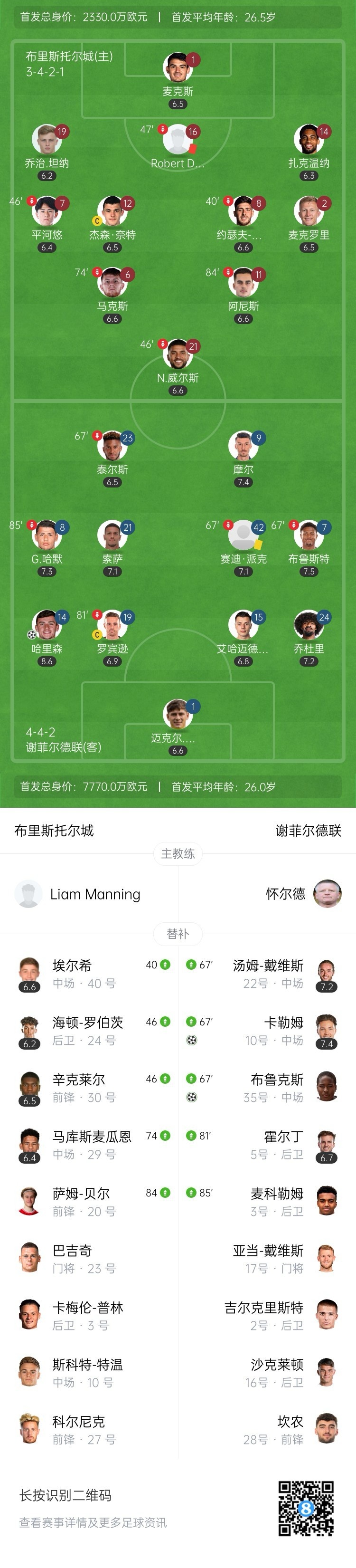 全场比赛结束,谢菲尔德联客场3-0完胜十人布里斯托尔城。