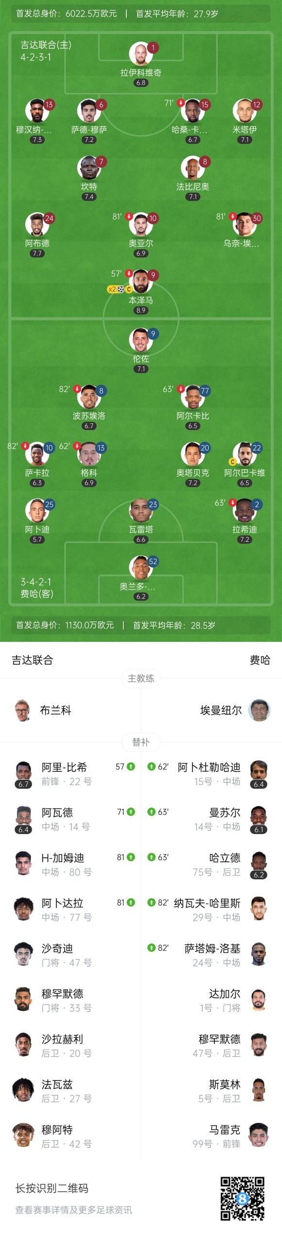 下半场补时6分钟,吉达联合3-0费哈。