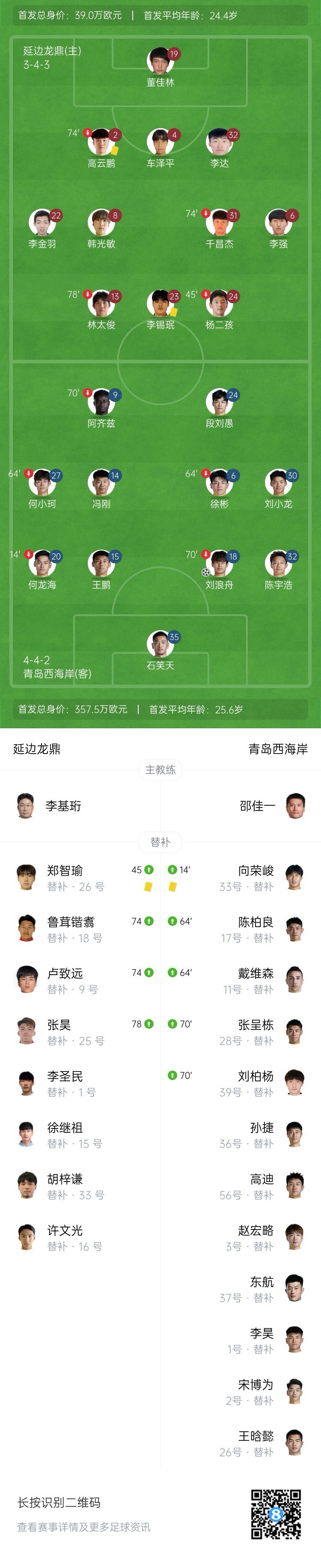 全场比赛结束,西海岸2-0击败延边龙鼎晋级足协杯16强。