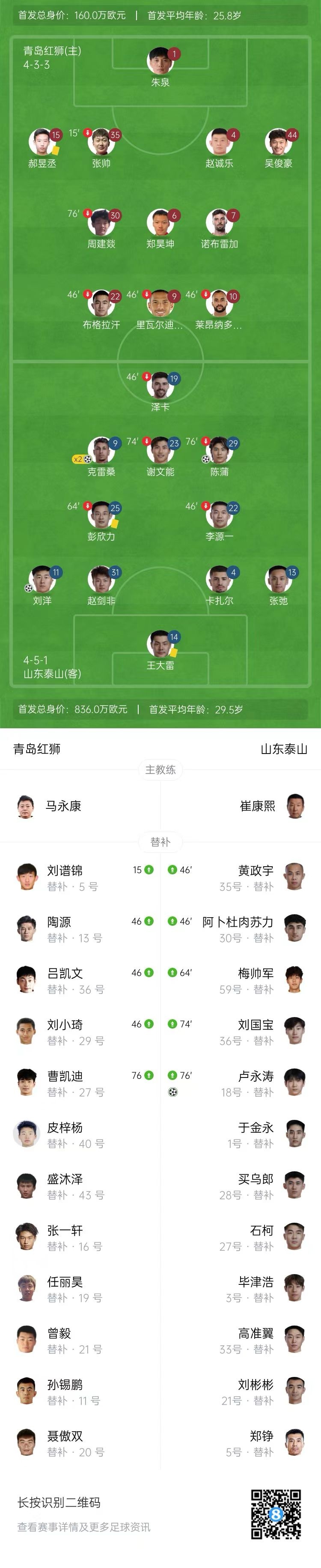 【双方比赛阵容】