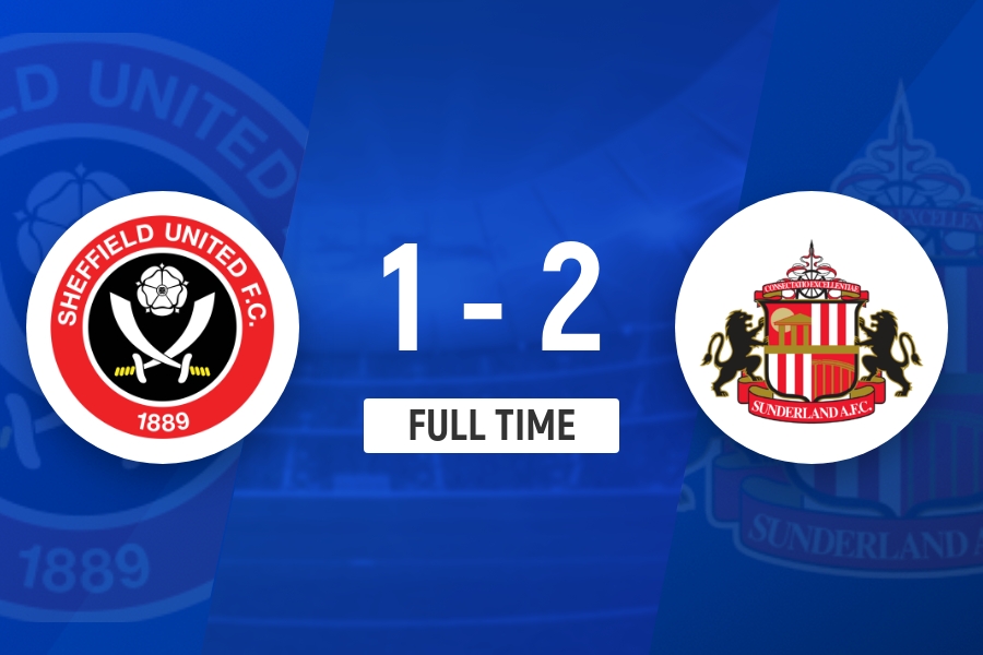 全场比赛结束,谢菲尔德联1-2桑德兰。