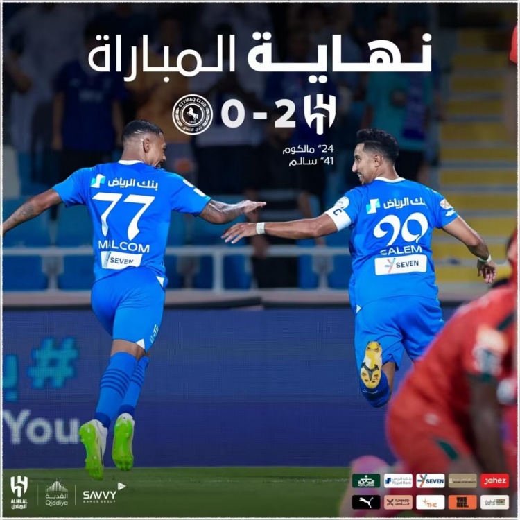 下半场补时5分钟,利雅得新月2-0达曼协作。