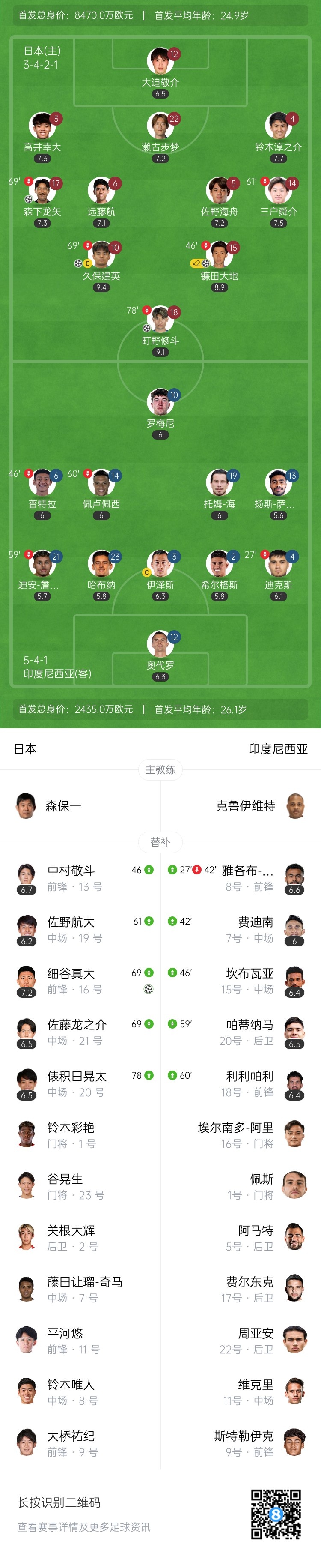 久保建英1射2传 日本6-0印尼小组头名收官 印尼锁定第4进第四阶段