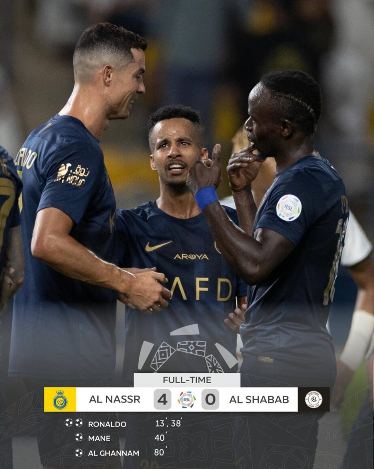 利雅得胜利出场阵容:44-纳瓦夫-阿奇迪、2-哈纳姆(80’12-纳瓦夫)、4-法蒂尔、27-拉波尔特(80’21-玛卡塔)、13-科南、17-哈巴利、25-奥塔维奥(85’8-苏莱西姆)、77-布罗佐维奇、29-加里卜、10-马内(80’11-加纳姆)、7-C罗(85’30-梅沙里)