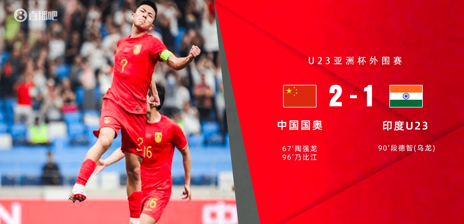 全场比赛结束,国奥队2-1击败印度U23队。