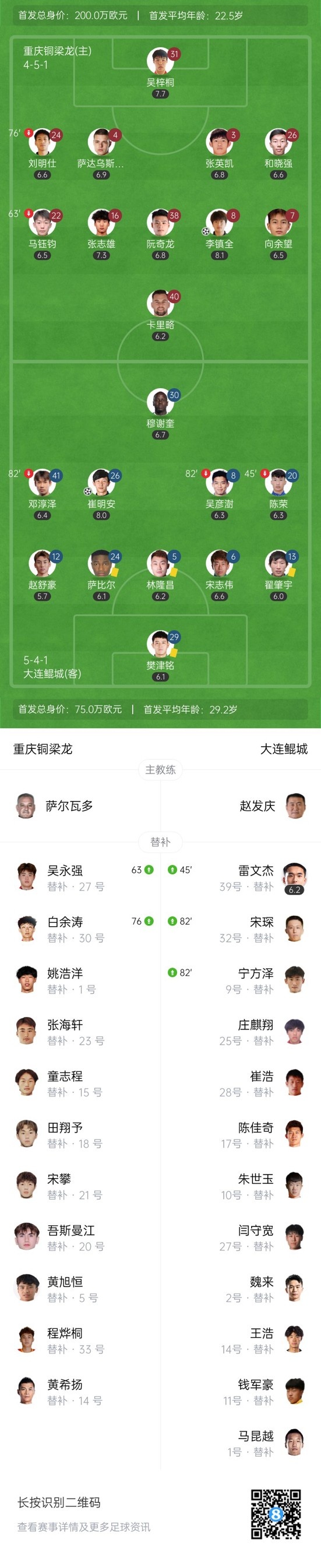 下半场补时7分钟,重庆铜梁龙1-1大连鲲城。