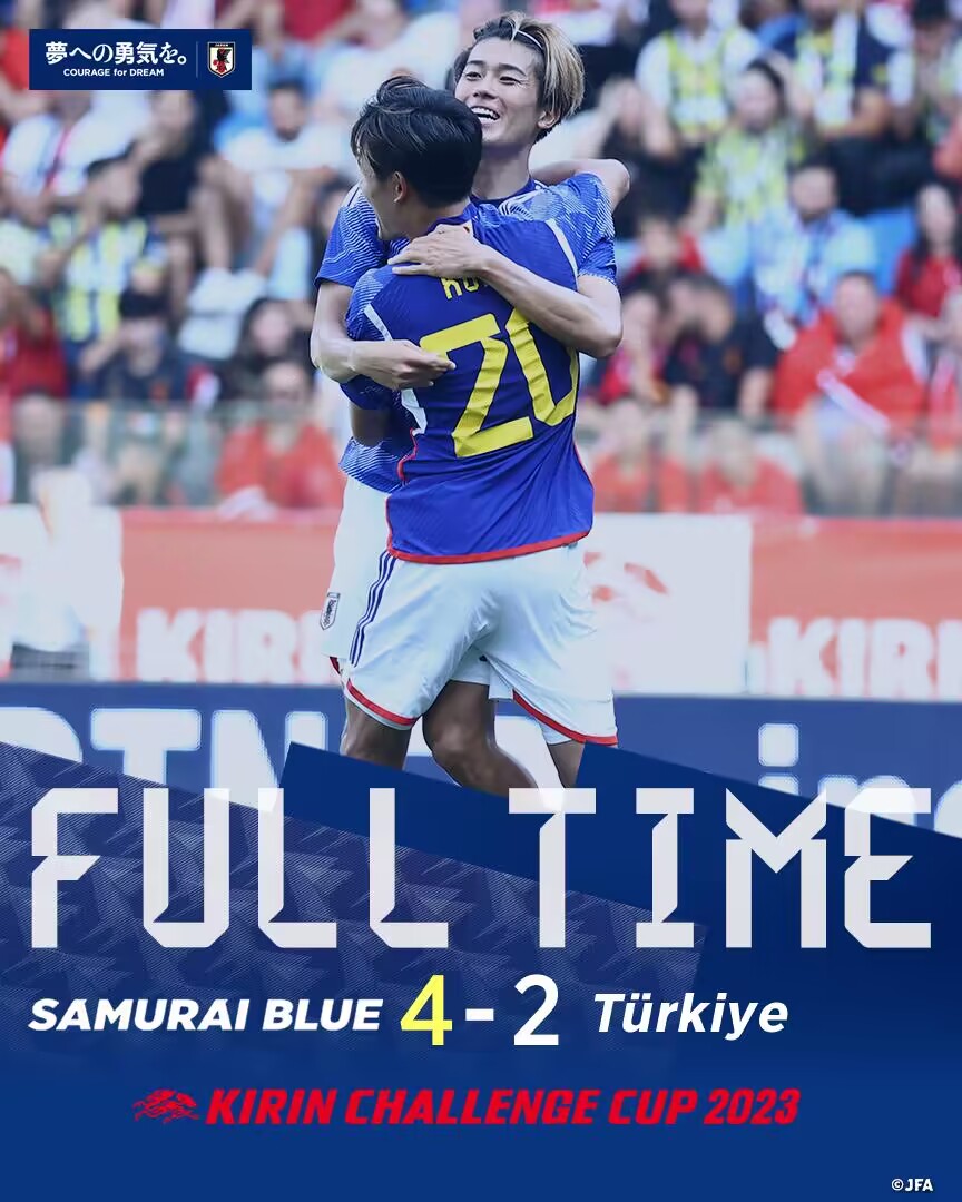 9月12日讯 今晚20:20国际友谊赛,日本对阵土耳其。本场比赛日本10人大轮换。上半场,堂安律助攻伊藤敦树轰入世界波。中村敬斗梅开二度。卡巴克扳回一球。日本门将中村航辅伤退。易边再战,贝尔图补射破门,古桥亨梧中柱,伊东纯也造点并主罚命中。最终日本4-2土耳其。