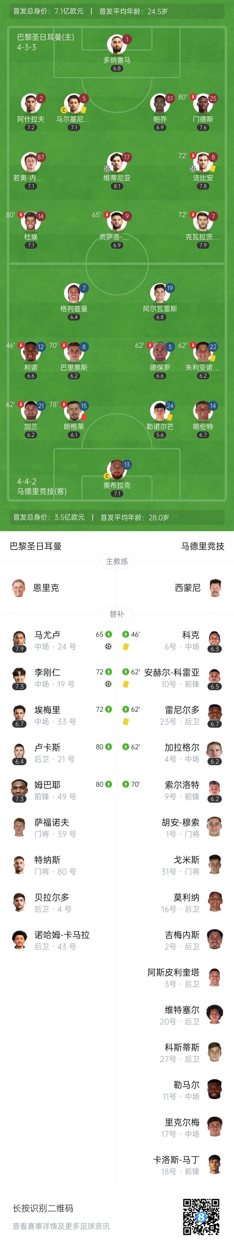 第87分钟,巴黎长传打穿马竞防线,阿什拉夫得球横扫门前,马竞没能解围干净禁区内乱战,马尤卢得球打近角入网,巴黎3-0领先↓