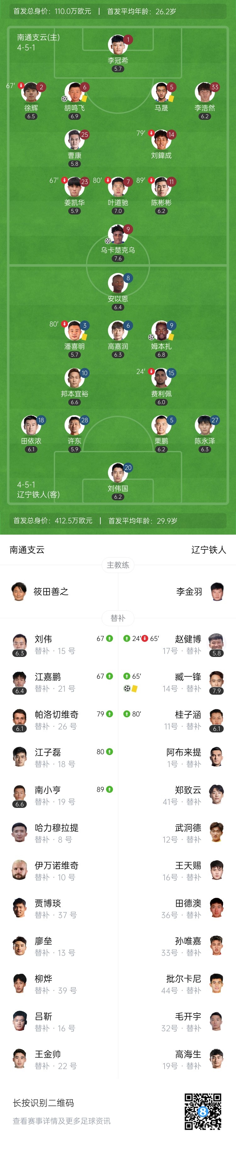 第19分钟,南通支云后场定位球开到禁区前,叶道驰抢到一点,禁区弧顶乌卡楚克乌胸部停球凌空抽射破门!南通支云1-0领先辽宁铁人↓