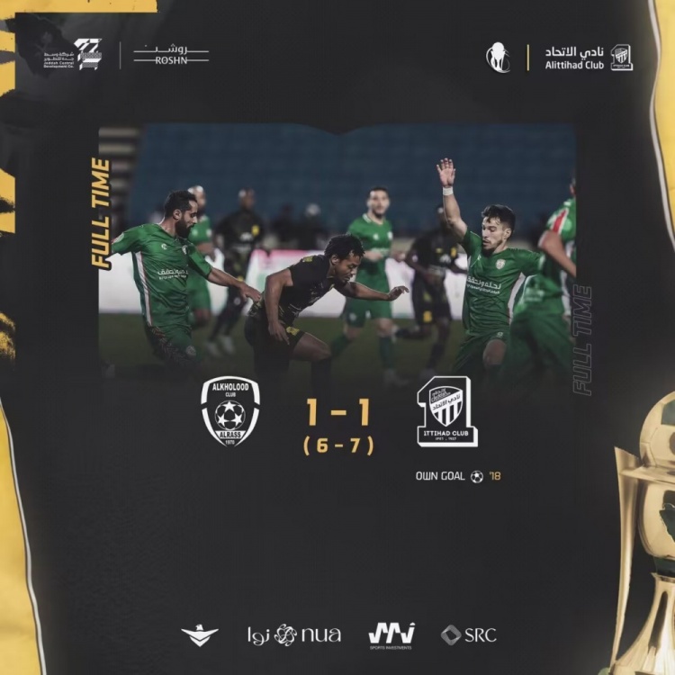 9月27日讯 北京时间9月27日2:00,沙王冠第一轮卡赫胡德对阵吉达联合的比赛,上半场阿姆里造乌龙,巴斯克斯利亚巴沙特失误抽射扳平比分,下半场双方均无建树,90分钟结束双方打成1比1平,加时赛双方未能改写比分,最终点球大战吉达联合8比7卡赫胡德晋级。