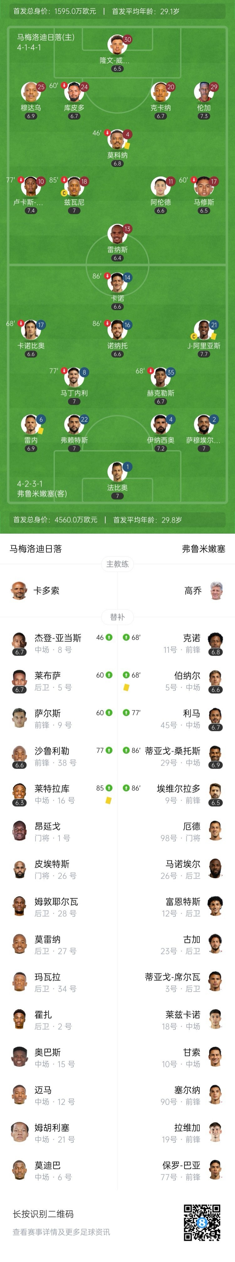 全场比赛结束,马梅洛迪日落0-0战平弗鲁米嫩塞。
