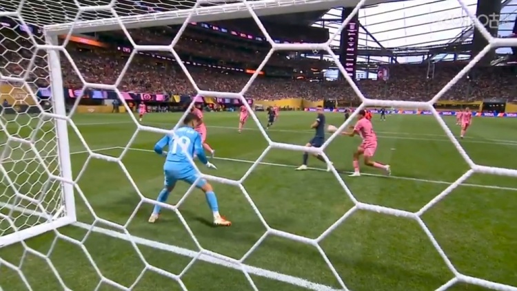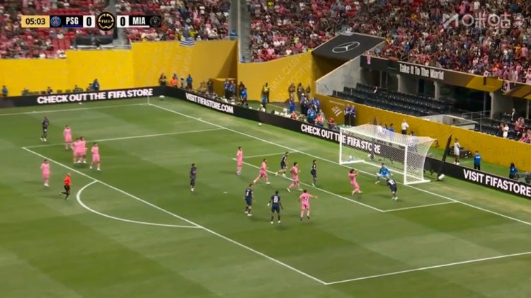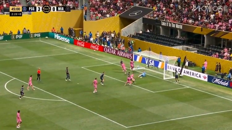 杜埃造阿维莱斯乌龙!第45分钟,杜埃右路下底传中,皮球打在阿维莱斯身上折射,随后飞进自家大门,巴黎圣日耳曼3-0迈阿密国际!↓