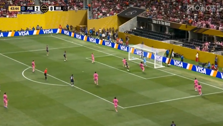 若奥-内维斯双响!布斯克茨失误被断!第39分钟,布斯克茨后场失误被断,法比安禁区右侧横传门前,若奥-内维斯推射空门得手,巴黎圣日耳曼2-0迈阿密国际!↓
